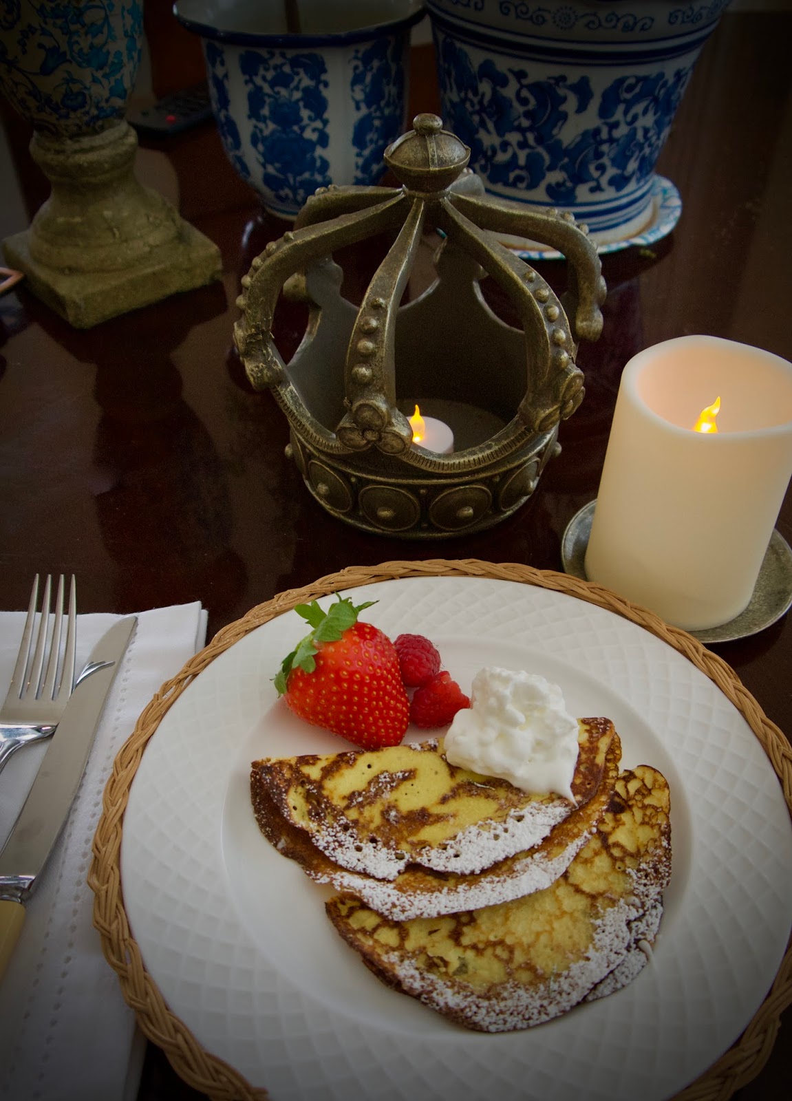 While hardly a beauty, a generous dusting of confectioners sugar, fruit and fresh mint leaves help camouflage imperfections and add flare.