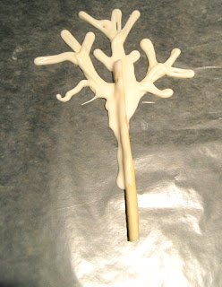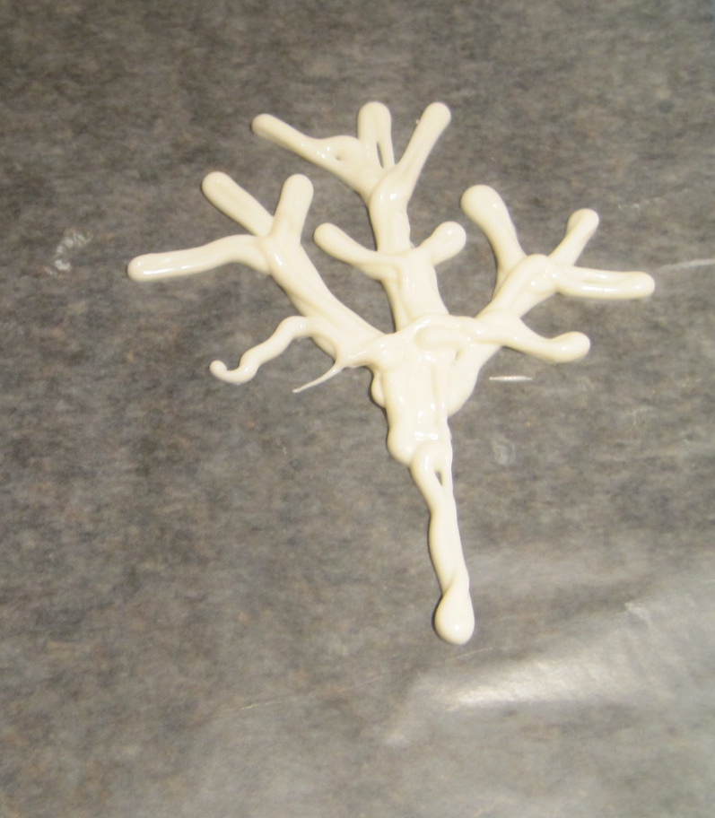 For this display I cut varying lengths of clear monofilament attaching a globe at both ends of each string. Then I draped the line over the different curves in the light fixture. This saves a lot of knot tying directly onto the light fixture- especially when you're precariously perched on a dining room chair. Also this allows an easy adjustment in the length of the line once they are hung- simply gently pull one globe longer- the other will shorten- but it beats tying and untying.
