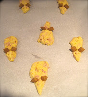 The best of both worlds: a tuna flavored "mouse" cookie. Using the Cat Cracker recipe, I molded the dough into rough mice shapes and added treats for ears before baking. While admittedly not the finest looking rodent, the treats were met with some approval from our furry friends. I also cut much smaller more snackable size treats from the same recipe.Always check with your vet to be sure homemade treats are ok for your furry friend-