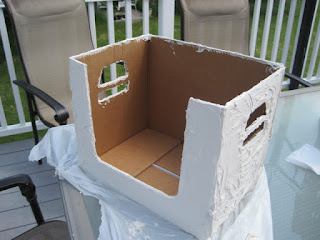 I then coated the box with joint compound to create a stucco-like texture and let dry thoroughly