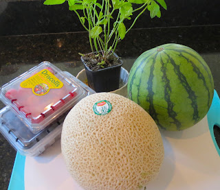 The opening in the cantaloupe was perfect for filling berries, or if watermelon is the top tier, simply scoop out a shallow "bowl"