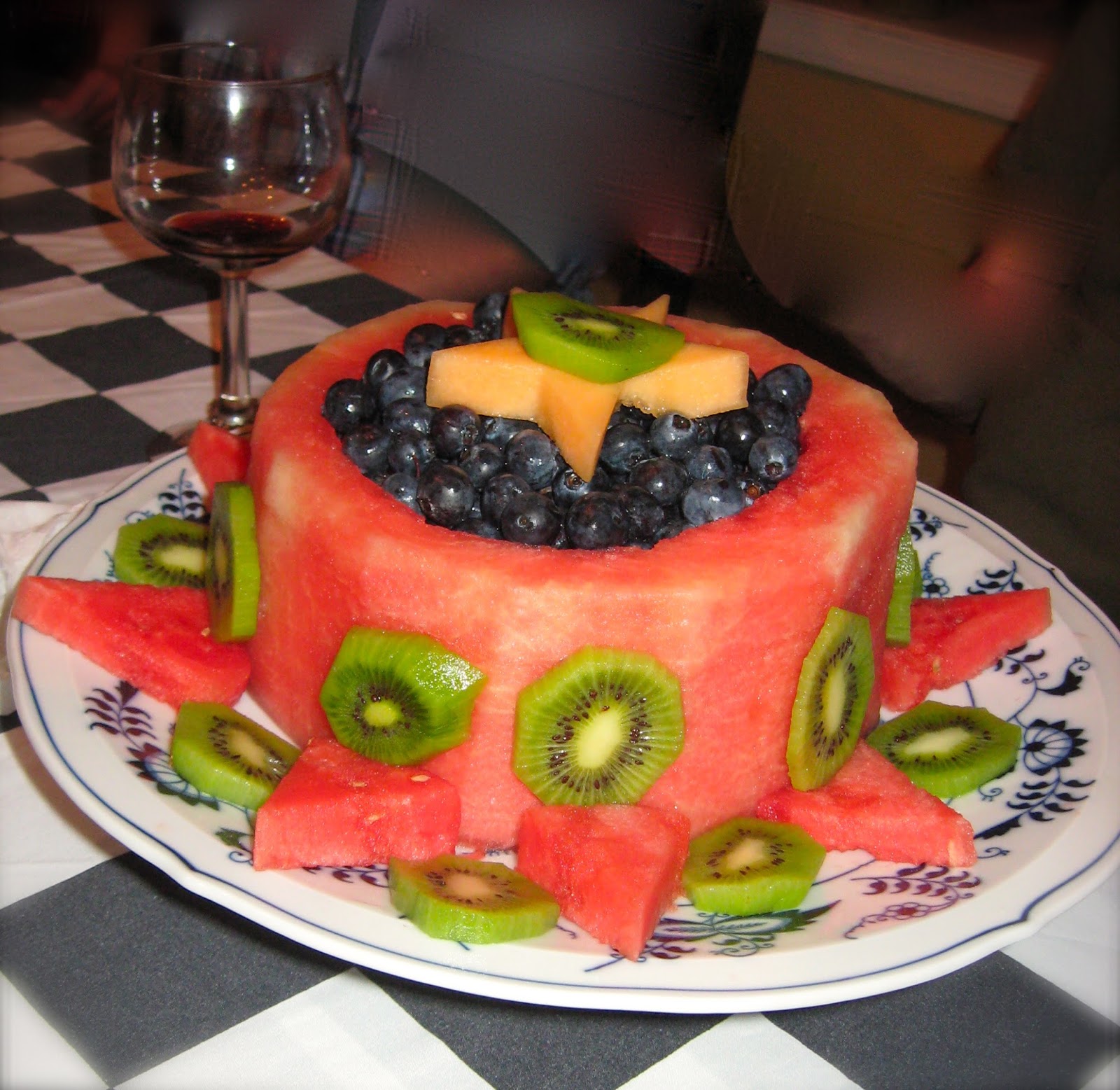 I used a smaller watermelon for a modest size "cake" but for a crowd a jumbo one would fit the bill