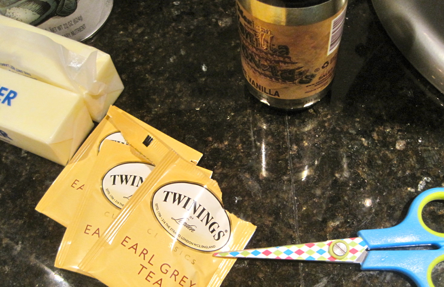 Print out this, or any preferred image of the Abbey, to appropriate size. Using a craft knife carefully cut out several windows. Tape discreetly onto clear candle holder or vase and pop in a flameless votive or two! I liked the way this square container worked with the architecture and the unusual orange color (It came from a fall flower arrangement) gives the light a warm glow. I used two identical printouts to wrap completely around votive.Earl Grey Tea Spoon Cookies