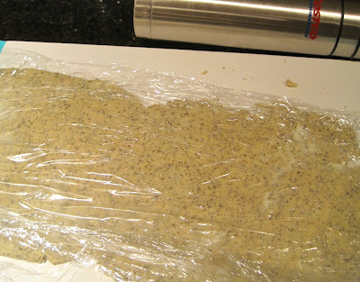 Instead of rolling the dough into a log shape, flatten it between two sheets of plastic wrap to about 1/3 of an inch before chilling. I couldn't find my rolling pin but happily my Costco thermos worked really well in a pinch!