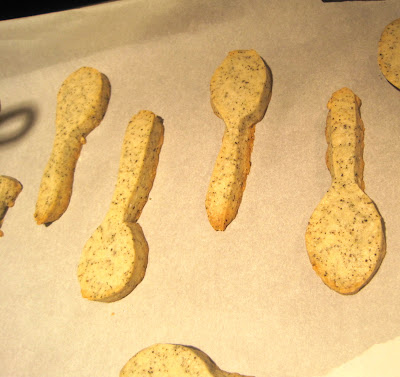 There are several good recipes online but I'm partial to this flavored shortbread from FoodNetwork.com, easily adapting the shape from a simple round cookie to a cute little spoon!